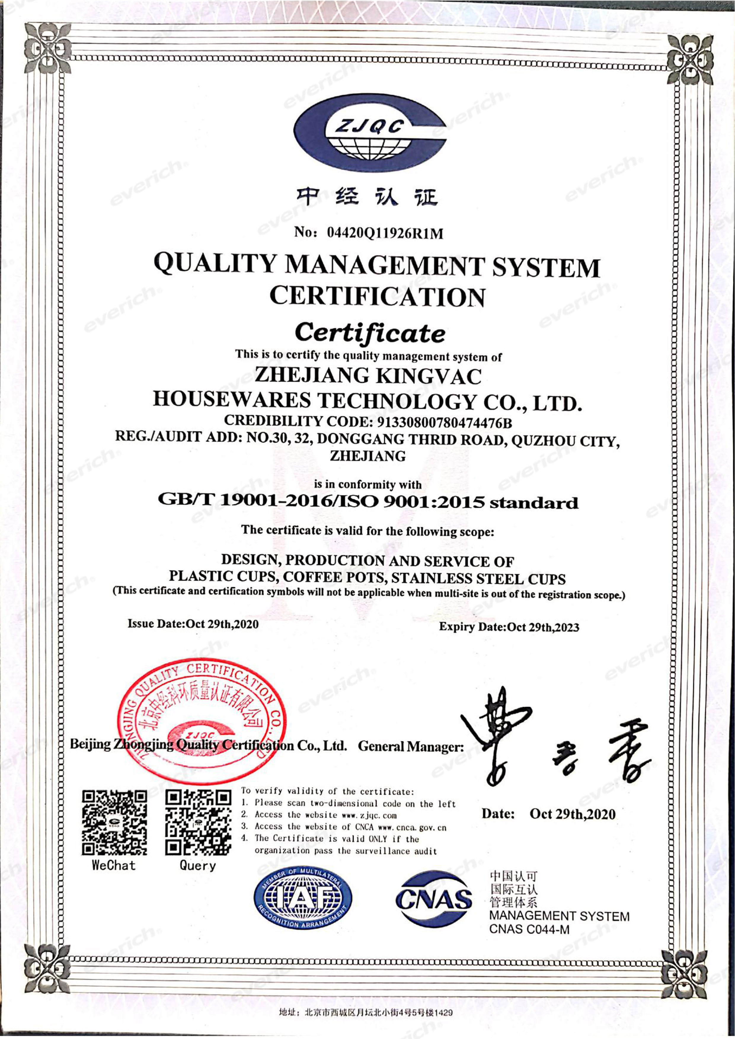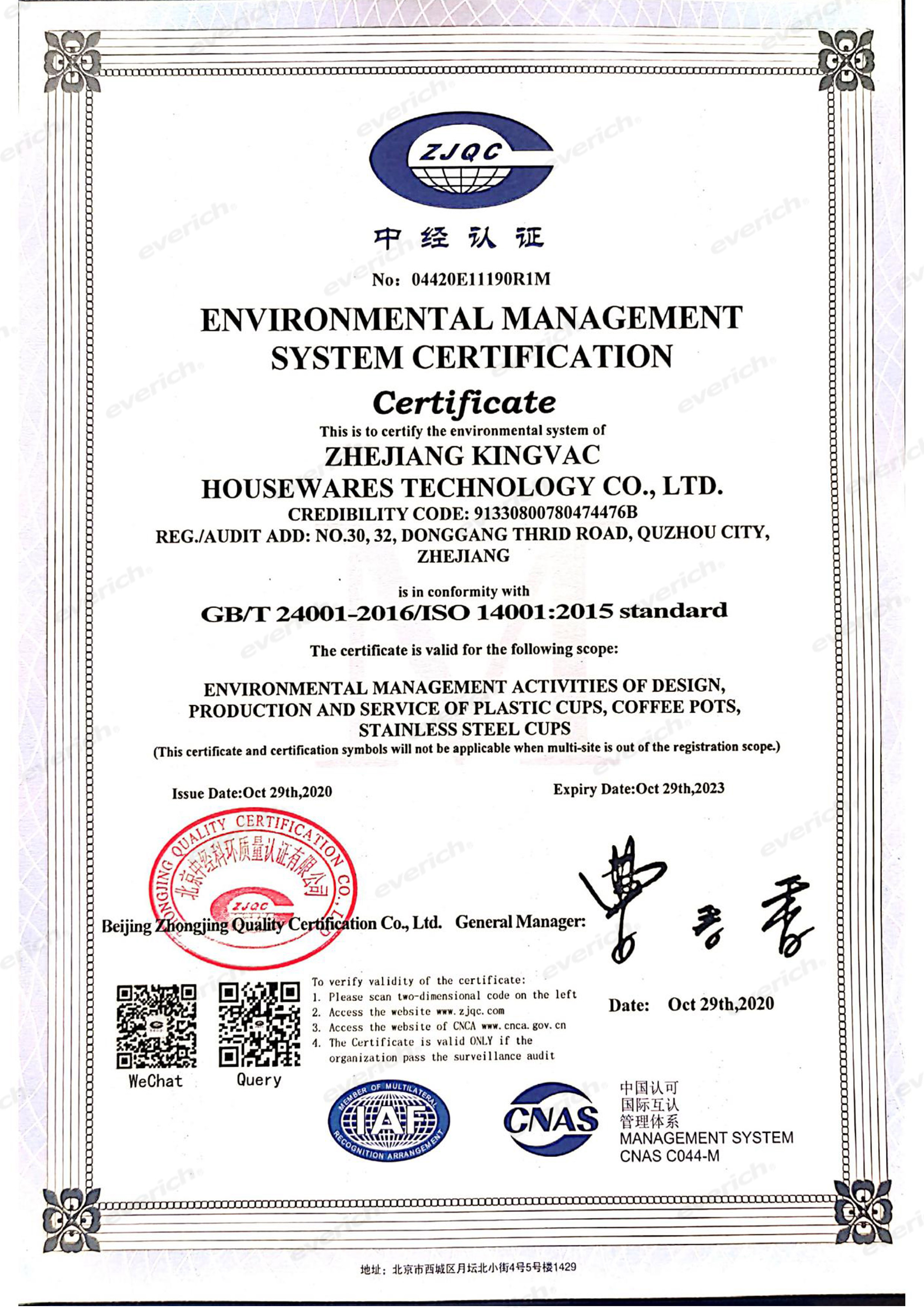 Everich croit fermement que l'innovation est fondamentale et que la qualité est la vie. Les matériaux de nos produits de bouteille sont 100% de catégorie alimentaire, qui est conforme aux normes européennes et américaines de nourriture, et passe des essais de tiers tels que FDA et LFGB, répondant à des exigences de TUV/GS. Notre usine a passé ISO 9001, BSCI, CAPR, Sedex, cible, SQP & WCA, GMP, et d'autres certifications.